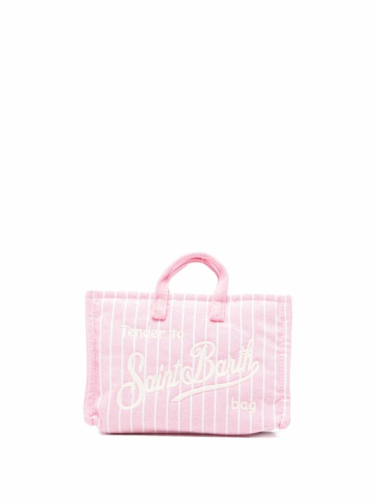 motivo a righe rosa/bianche, logo ricamato, manici superiori, tracolla removibile