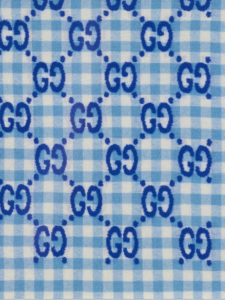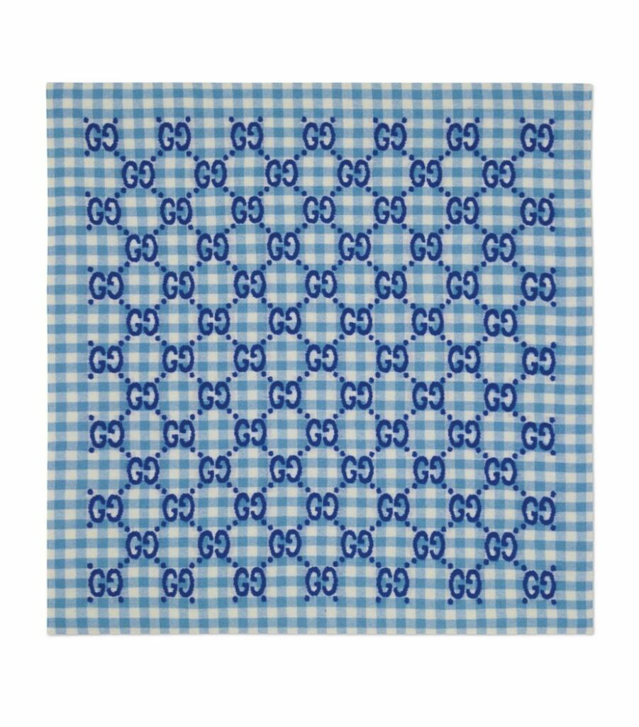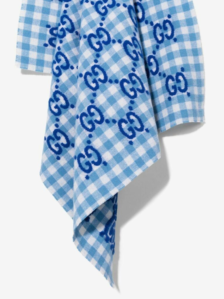 Coperta in lana blu a quadri GG in misto lana di GUCCI KIDS caratterizzata dal caratteristico logo Interlocking G e motivo a quadri.