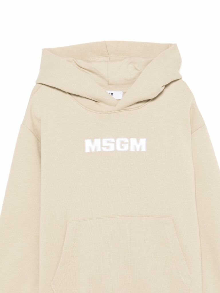 cappuccio beige con logo, tasca a marsupio sul davanti, maniche lunghe, orlo a coste