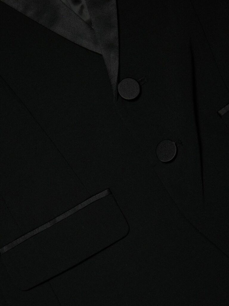 revers a lancia neri, due tasche laterali con patta, maniche lunghe, orlo dritto