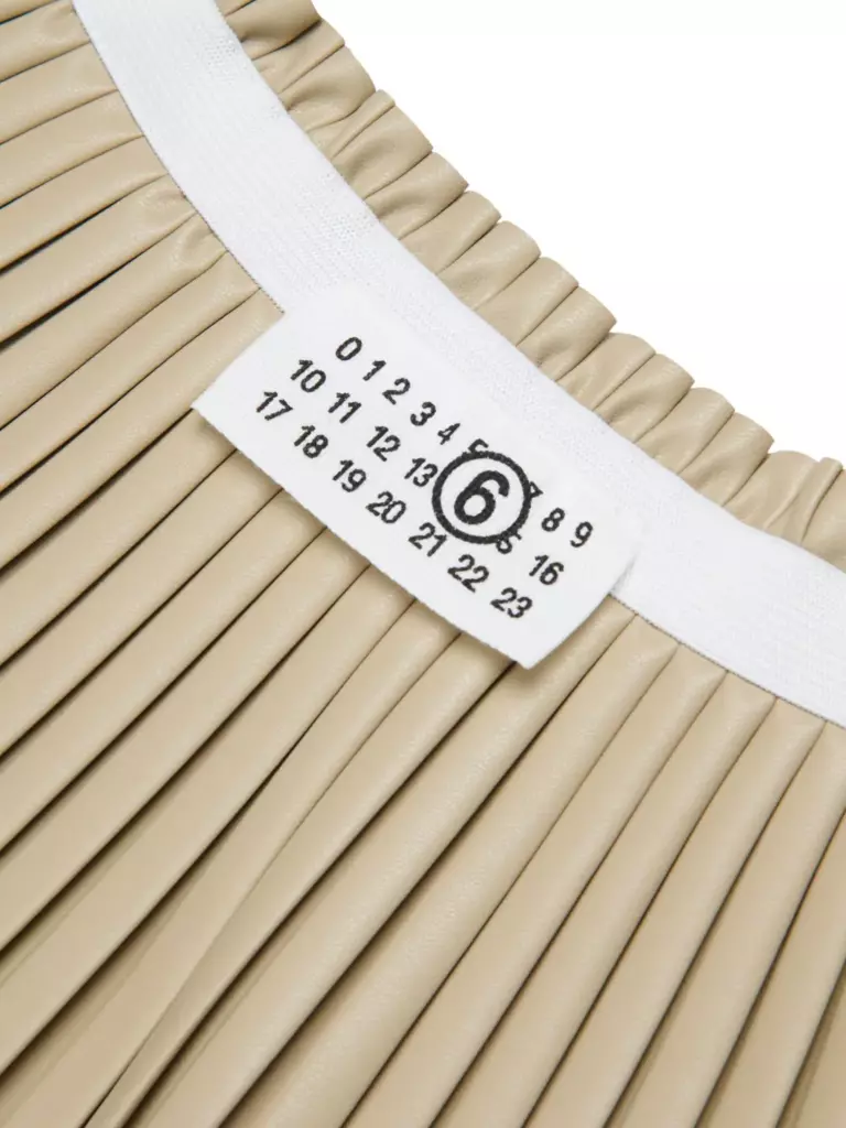 modello plissettato beige elastico in vita toppa con logo lunghezza corta forma a trapezio