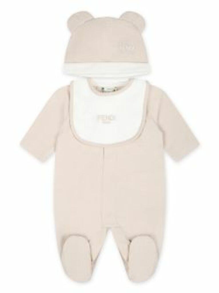 sacco nanna con stampa orsacchiotto di MOSCHINO KIDS caratterizzato da stampa grigia, marrone, cotone, orsacchiotto, stampa logo all-over, toppa con logo sul davanti e chiusura con zip laterale.