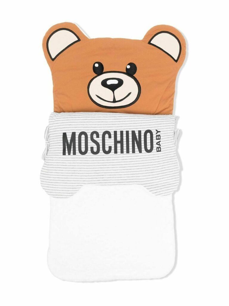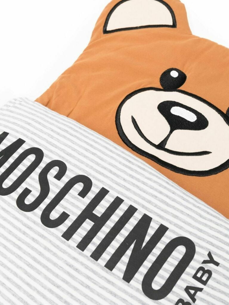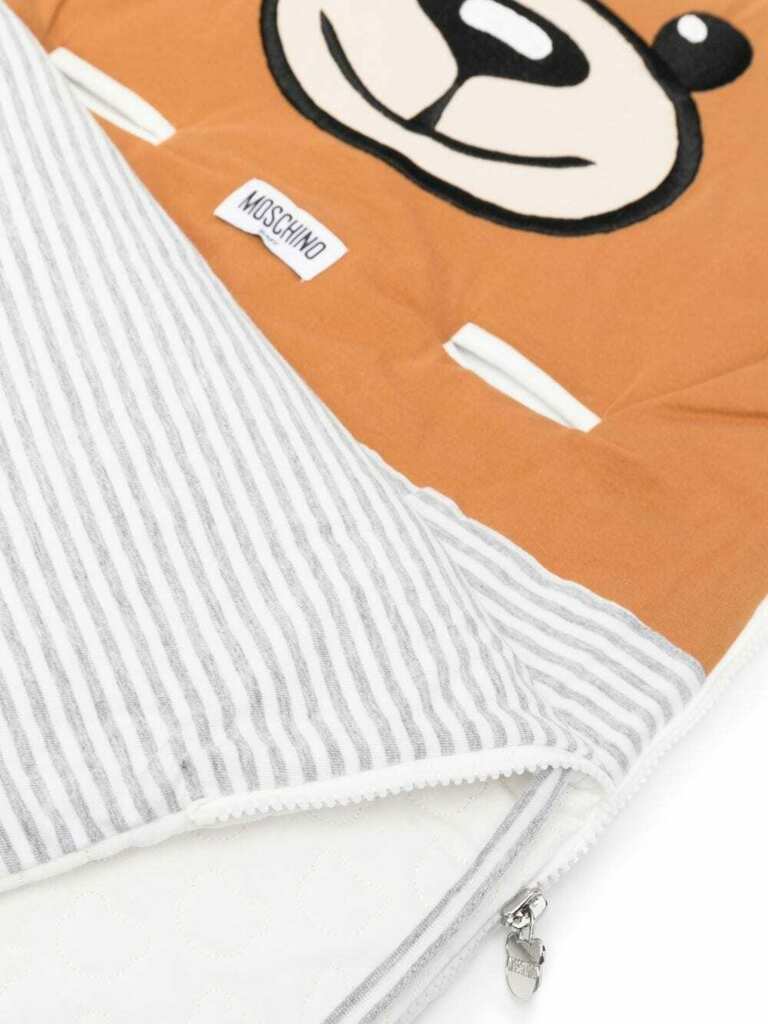 Nido con logo Teddy Bear di MOSCHINO KIDS caratterizzato da bianco/multicolore, misto cotone, motivo a righe caramelle, design imbottito, trapuntato, motivo caratteristico Teddy Bear e chiusura con zip laterale.