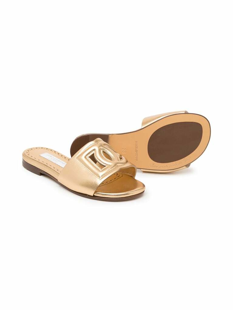Sandali in pelle color oro con logo e effetto metallico di DOLCE & GABBANA KIDS. Caratterizzati da dettagli cut-out, effetto metallico, punta aperta e suola piatta in gomma.