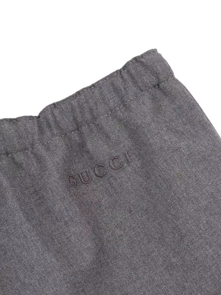 elastico in vita grigio, chiusura frontale con bottoni, logo ricamato, design semplice