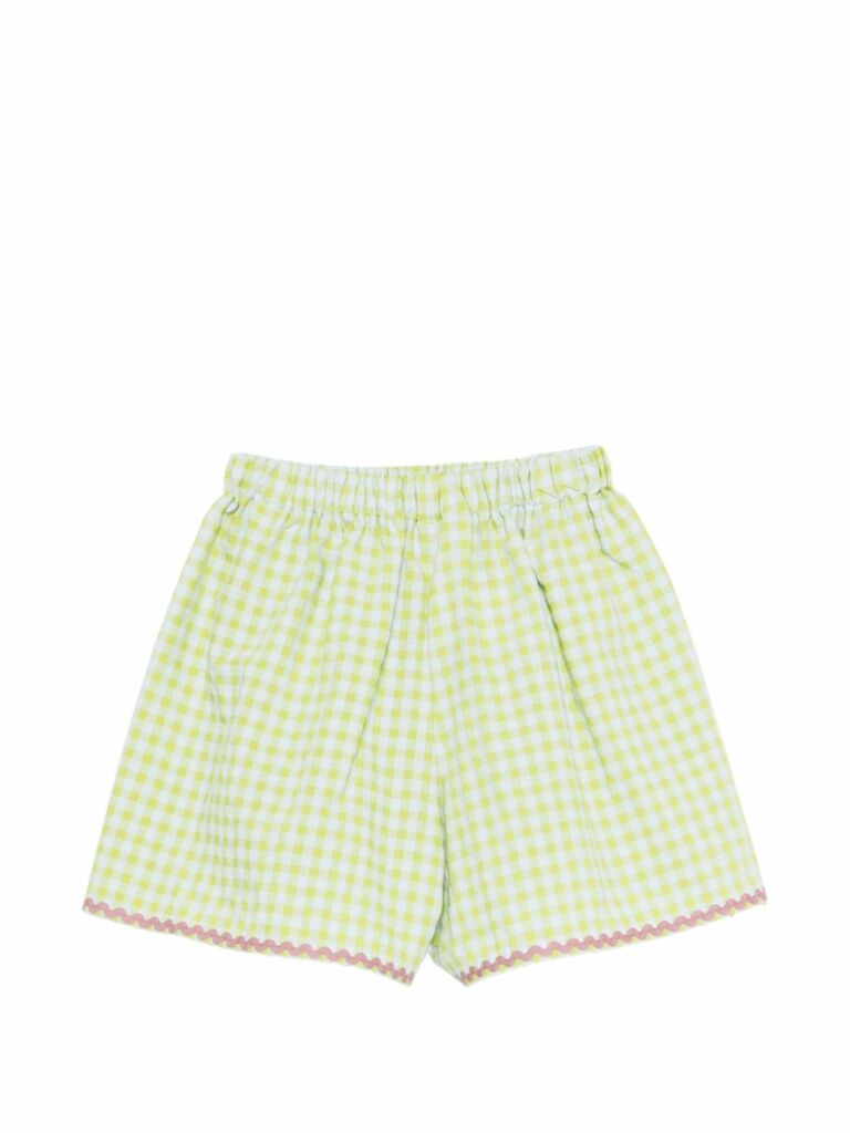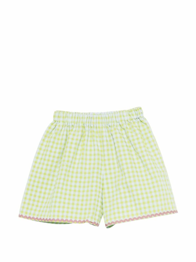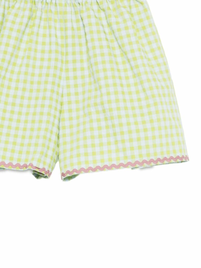 Vita elasticizzata con motivo a quadretti verdi e bianchi e bordo smerlato