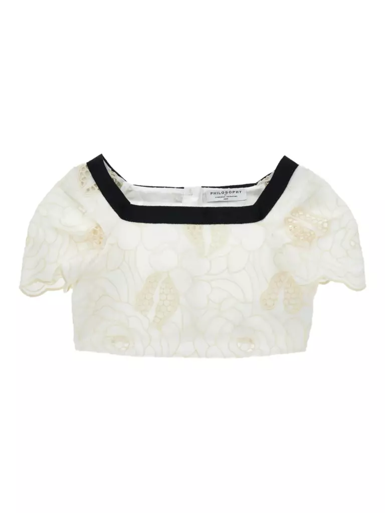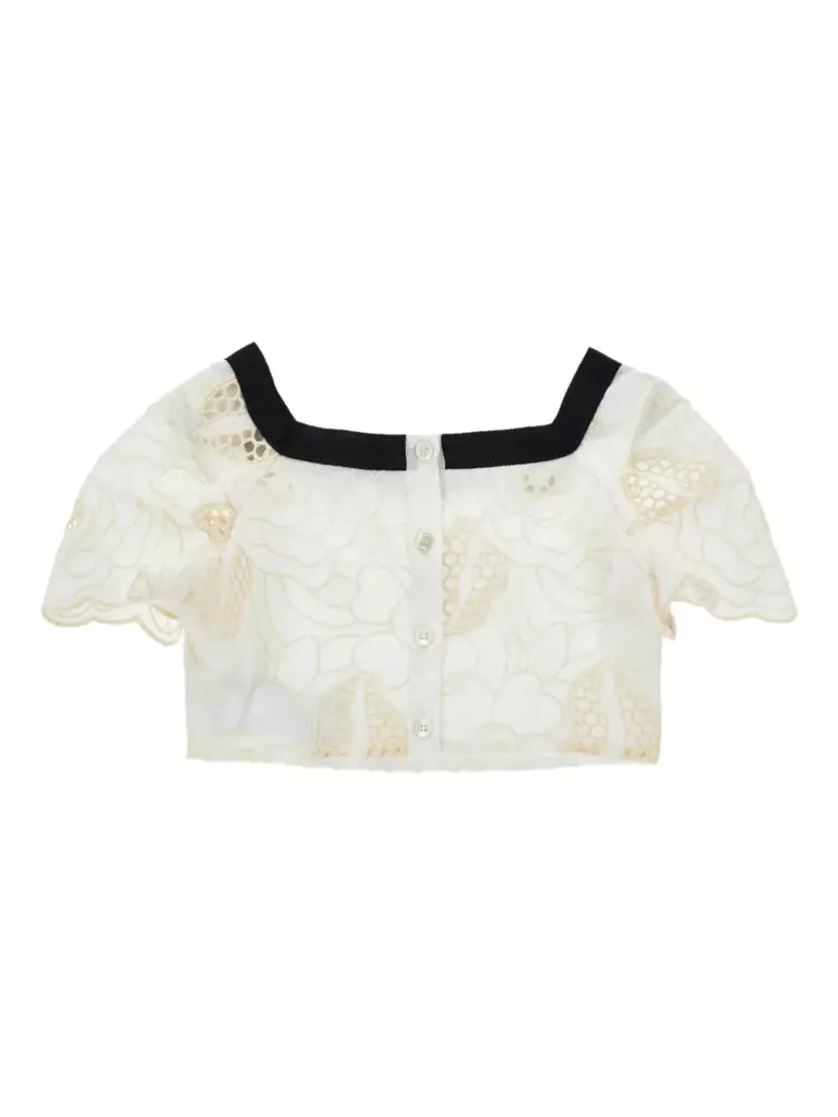 Mini top cotone ricamato con trafo panna/ecru
