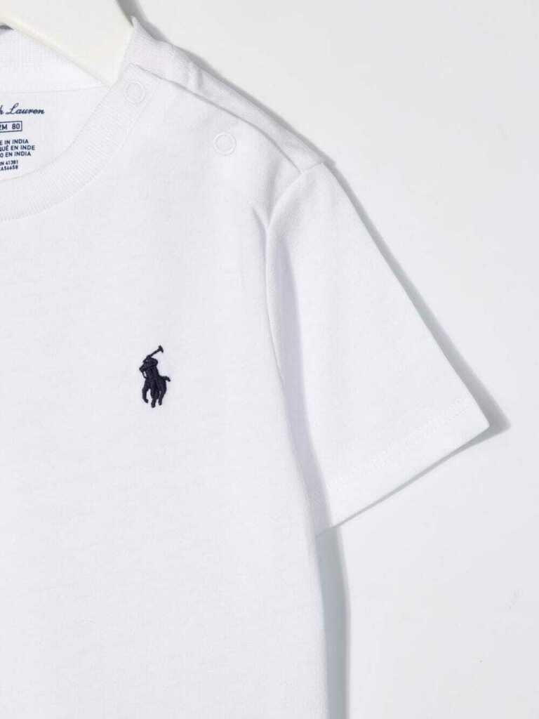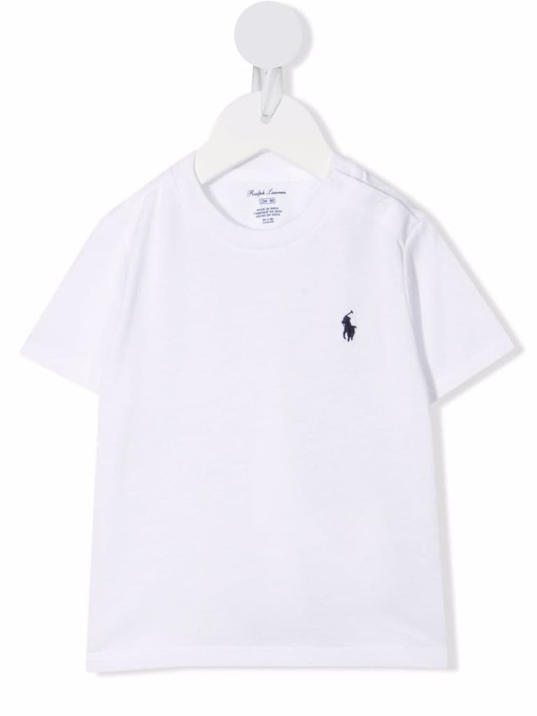 T-shirt in cotone bianco con logo Polo Pony in cotone di RALPH LAUREN KIDS caratterizzata dal caratteristico motivo Polo Pony, girocollo, chiusura con bottoni sulla spalla, maniche corte e orlo dritto.