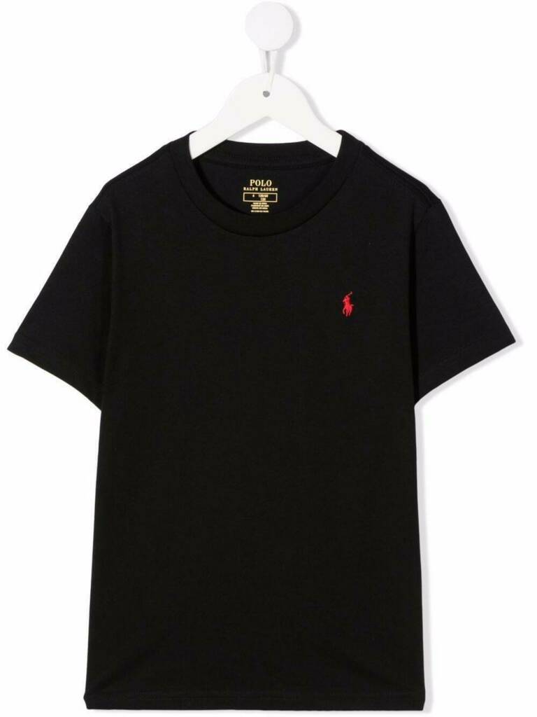 T-shirt girocollo in cotone nero con logo Pony di RALPH LAUREN KIDS caratterizzata dal caratteristico motivo Polo Pony, girocollo e maniche corte.