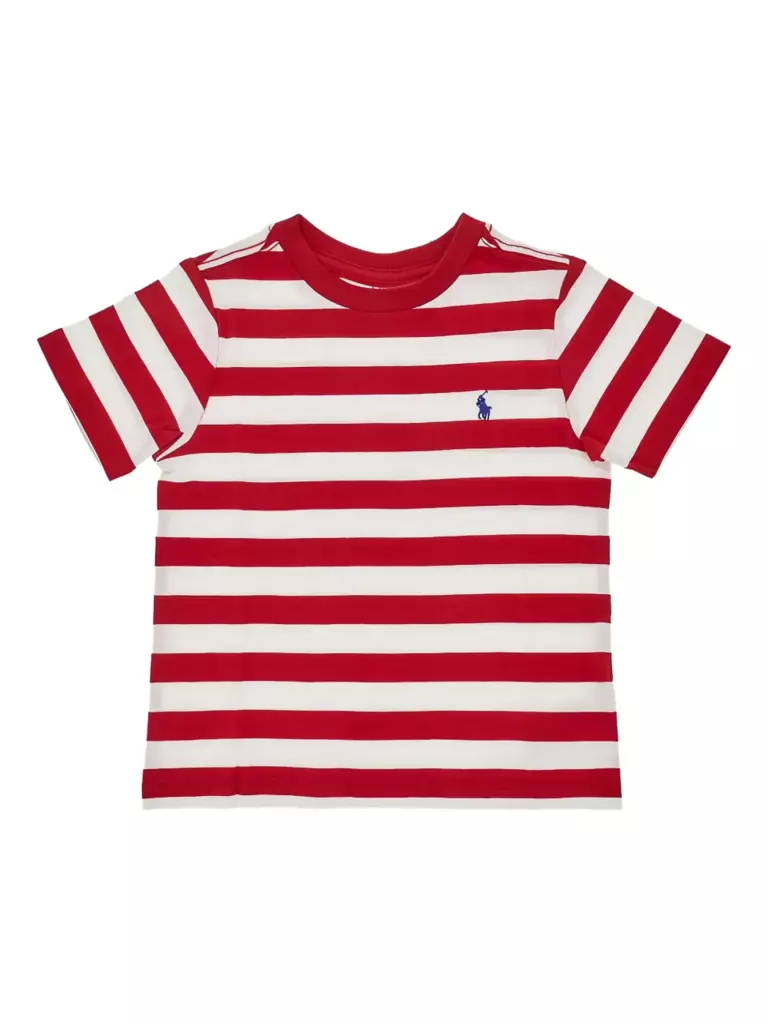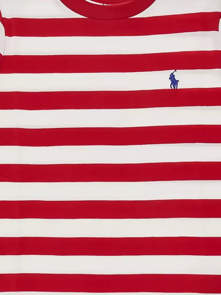 girocollo a maniche corte con logo ricamato a righe verdi e bianche