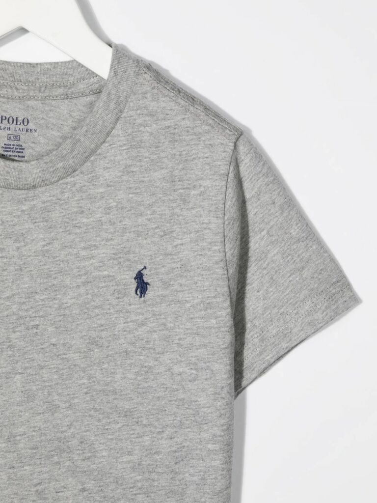 T-shirt con logo ricamato in cotone grigio di RALPH LAUREN KIDS. Modello con effetto mélange, logo ricamato sul davanti, girocollo, maniche corte e orlo dritto.